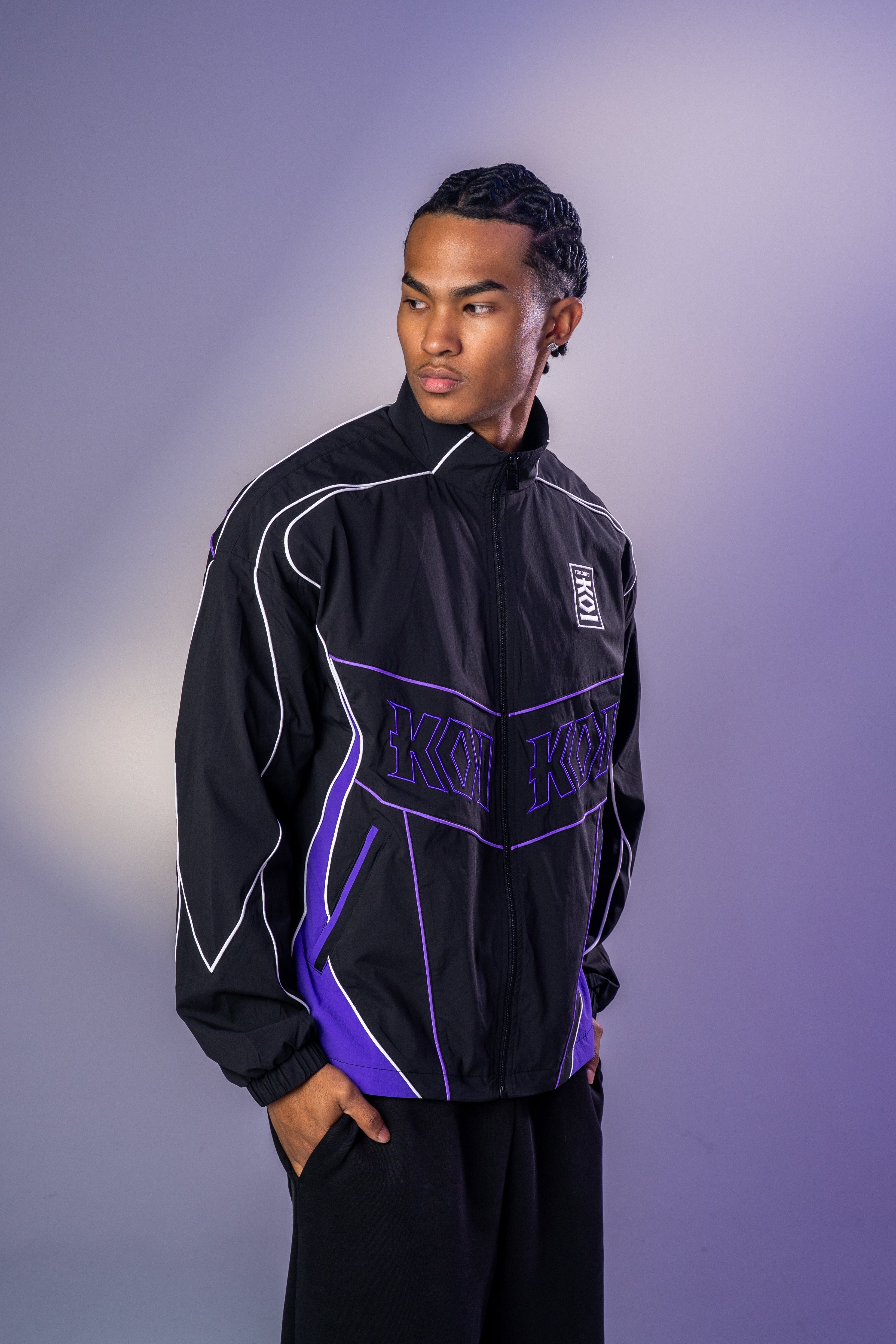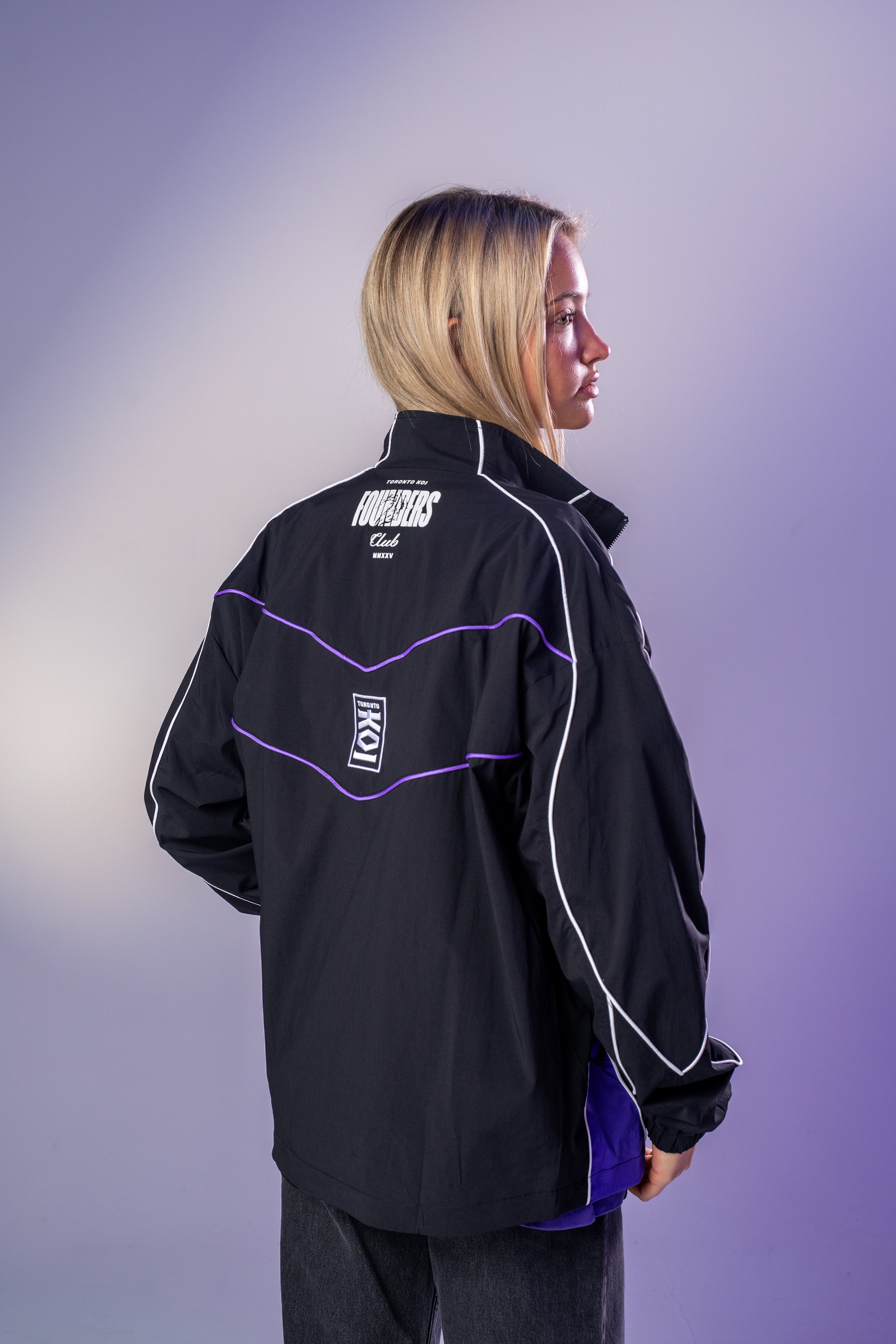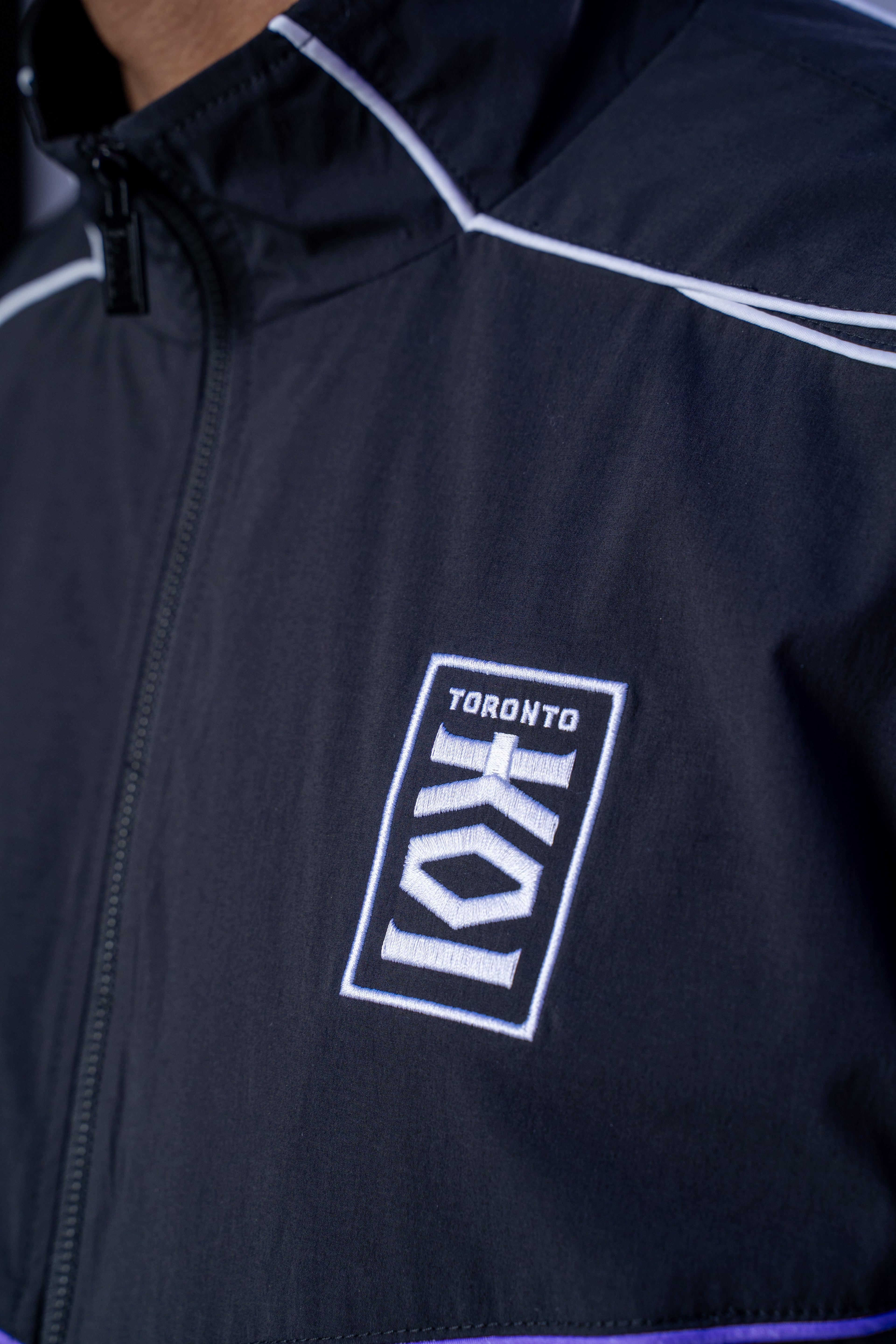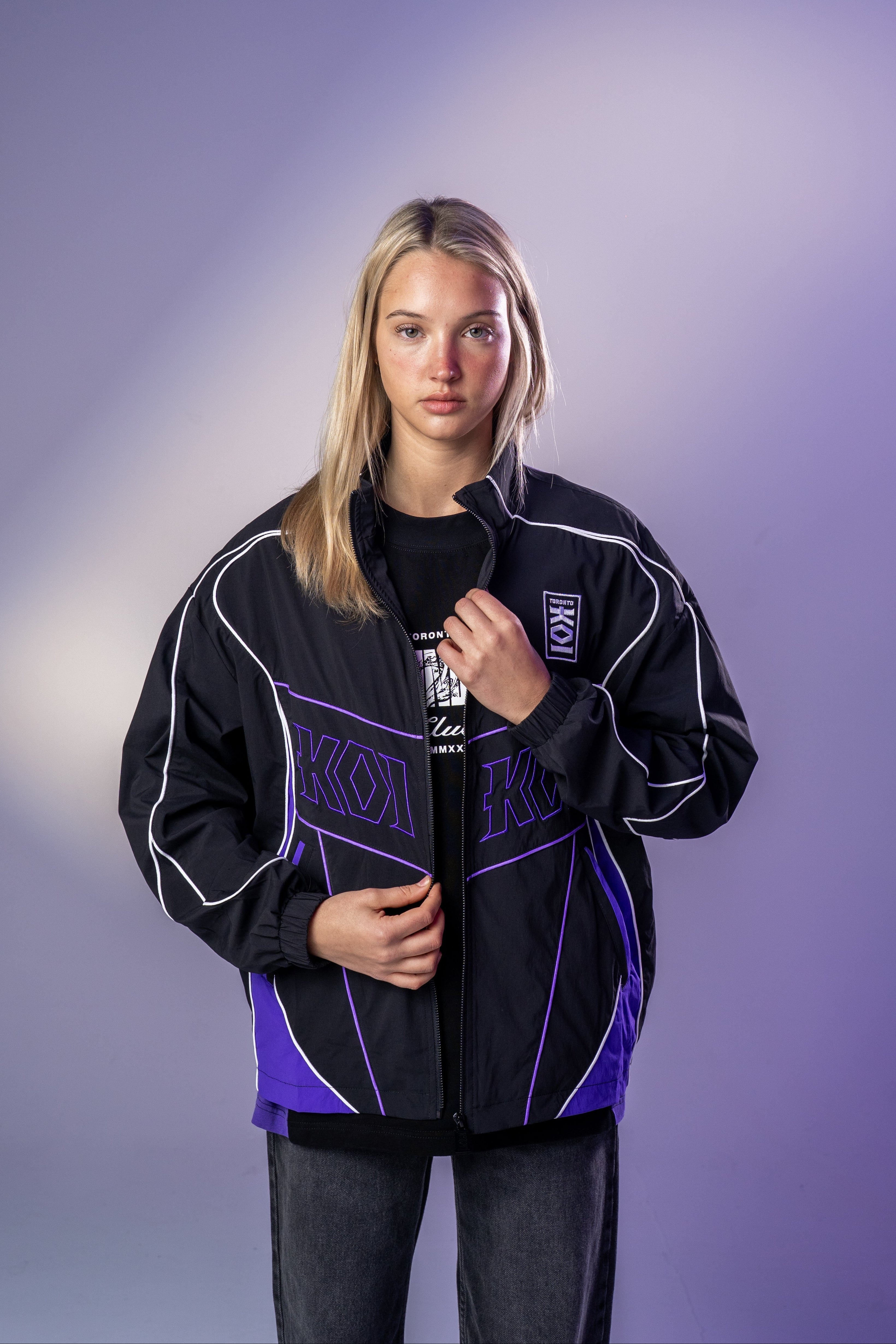Introducing the Toronto Koi Founders Jacket. A retro-sport inspired track jacket built with bold KOI branding and dynamic curved panelling. This piece blends lightweight comfort with a strong silhouette, making it ideal for everyday wear or layering on the go.